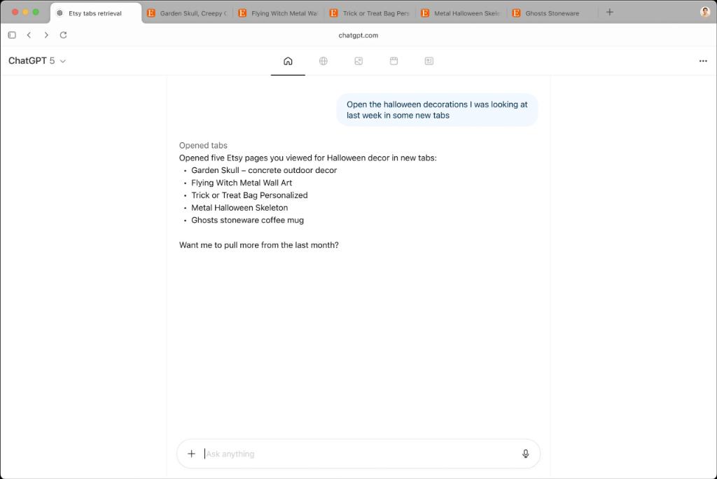 对于付费用户,Atlas 提供 "agent 模式 ",ChatGPT 可在浏览器中代为完成任务。