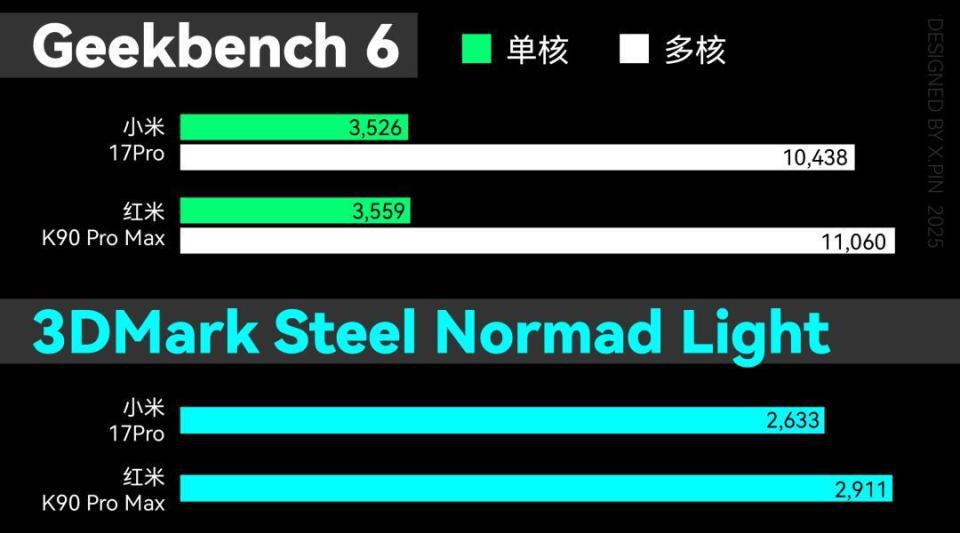 这个处理器在小米 17 Pro 上,由于背屏和小尺寸,没怎么使出全力。而在 K90 Pro Max 则狂暴许多。
