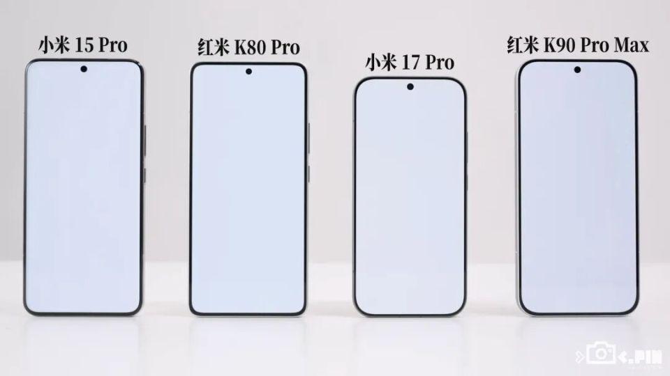 托尼找来了上代的小米 15 Pro、K80 Pro,这代的小米 17 Pro,以及 K90 Pro Max。