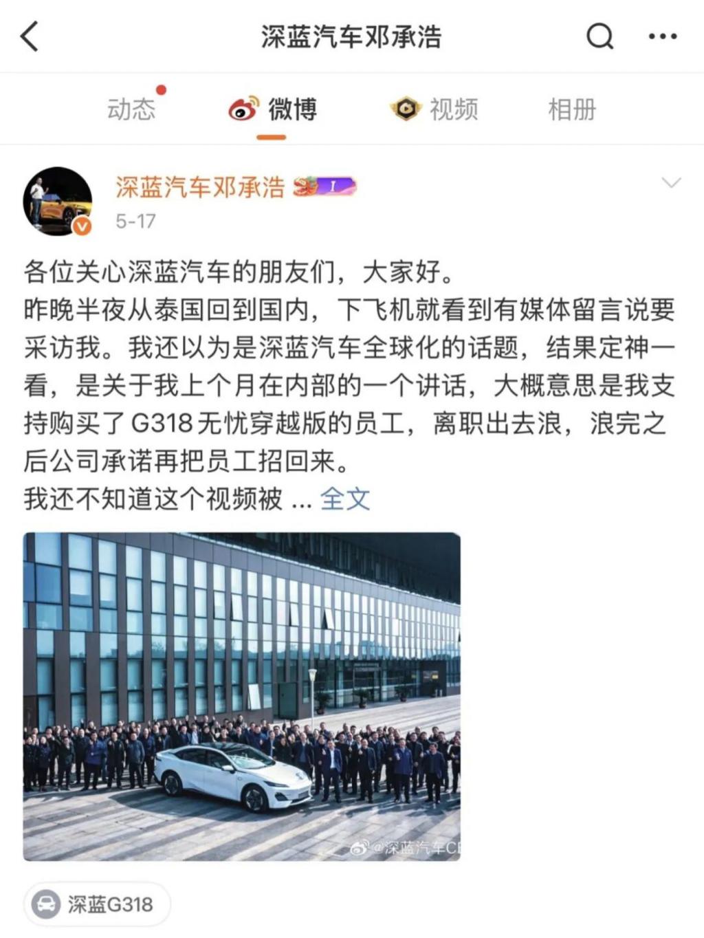图 / 深蓝汽车邓承浩微博