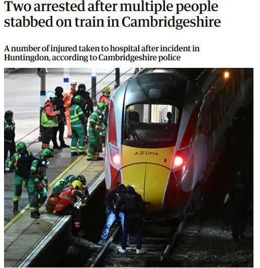 中新网 11 月 2 日电 据英国《卫报》报道,当地时间 11 月 1 日,英国一前往剑桥郡亨廷登的火车上发生持刀行凶事件,已有两人被警方逮捕。