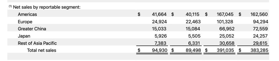 本季度,中国市场(大中华区)是苹果全球市场中唯一出现营收下滑的地区。大中华区营收录得 144.93 亿美元,同比下滑 3.6%。这一表现打断了该市场在上季度刚刚开启的复苏势头,也表示苹果在中国市场的增长环境依然充满变数。