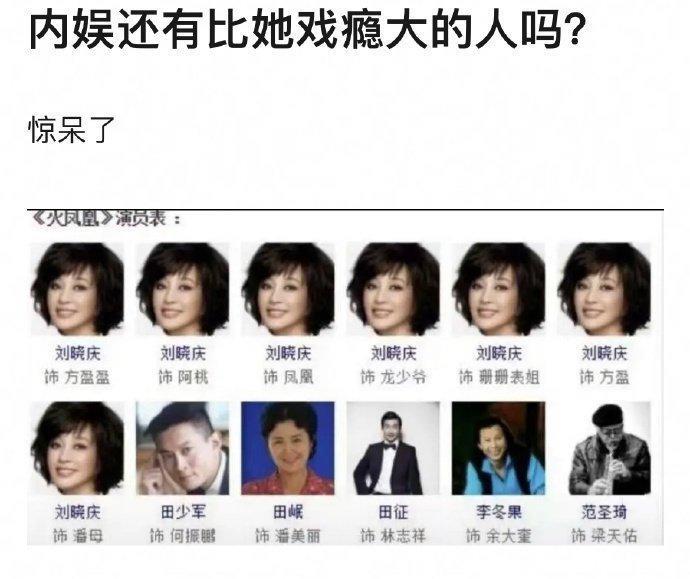 #刘晓庆演我做小组作业##刘晓庆一人饰演七角#刘晓庆曾在电视剧火凤凰中一人饰演七角,网友锐评:演我做小组作业