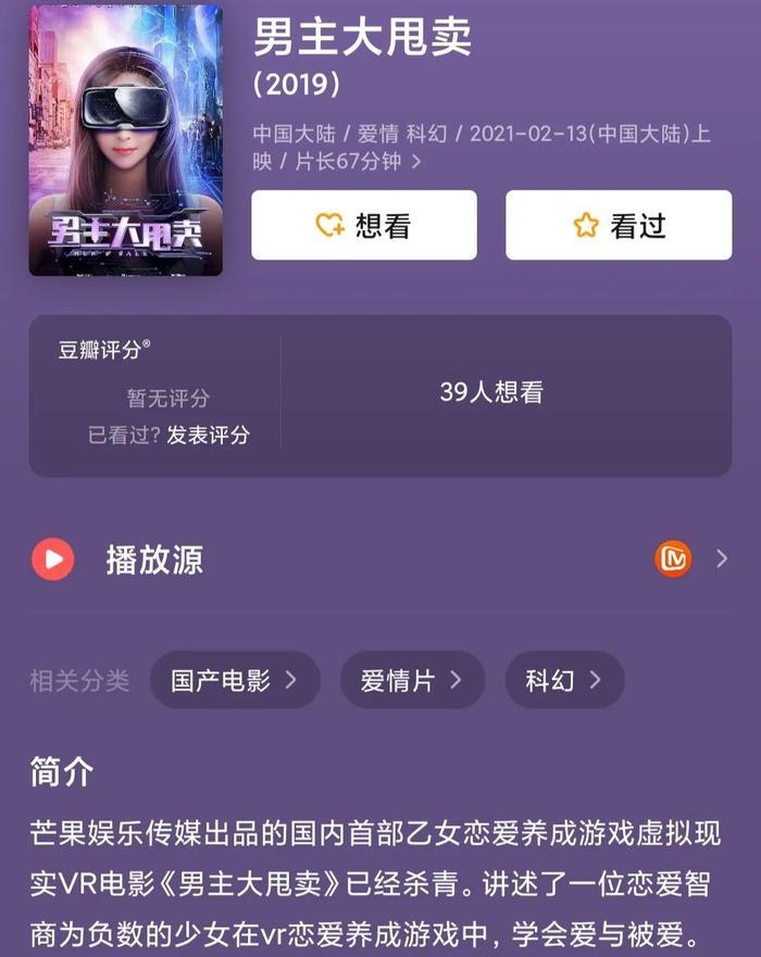 今年2月份播出的电影《男主大甩卖》,也已经是2019年拍摄的作品,