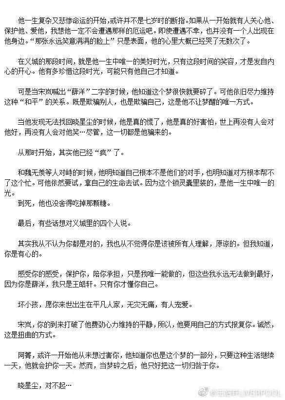薛洋下线当日,王皓轩还发动态聊自己对薛洋这个角色的感悟。