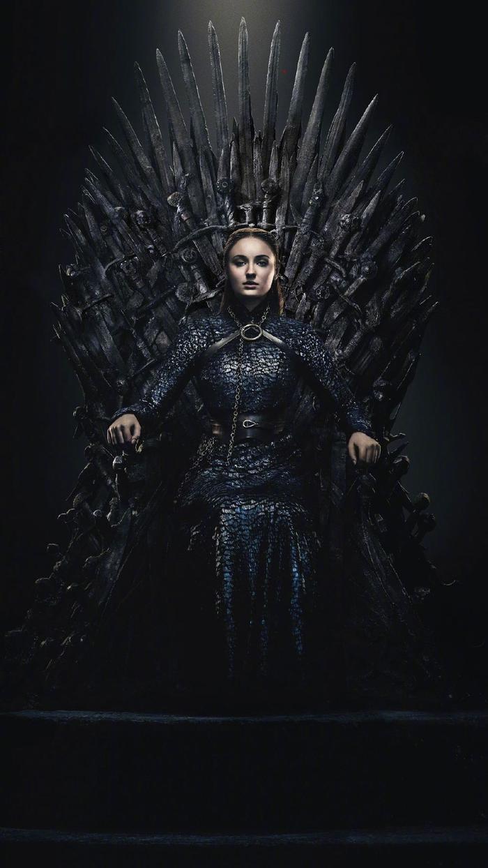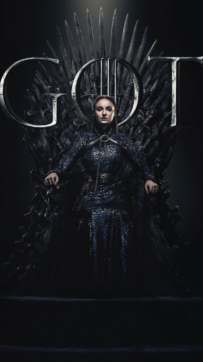 《权力的游戏》第八季宣传海报:龙妈Emilia Clarke 、二丫Maisie Williams 、三傻Sophie Turner。