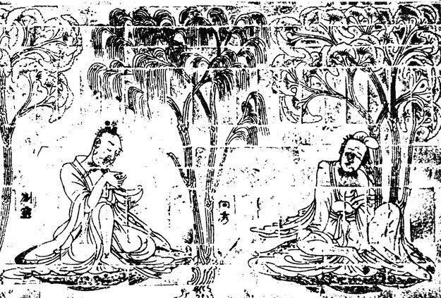 《竹林七贤与荣启期》模印砖画,现存于南京博物院