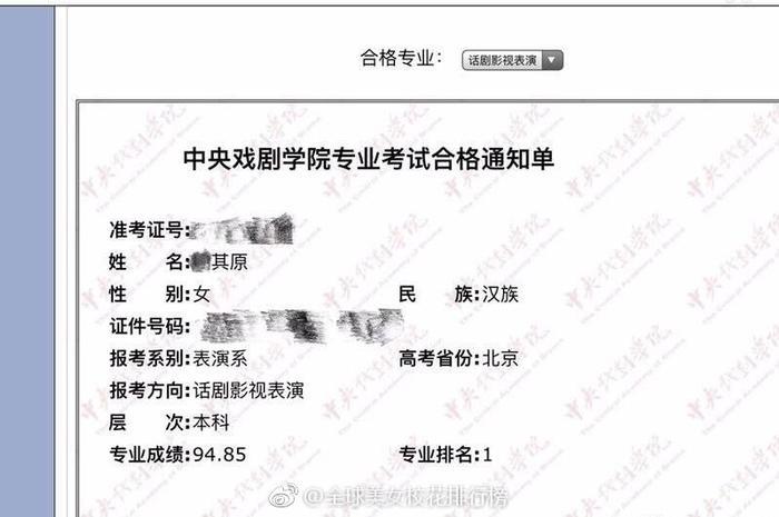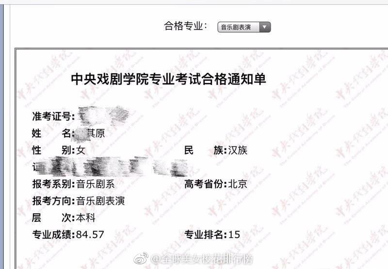 韩其原,中央戏剧学院话剧影视表演第1名,音乐剧表演第15名