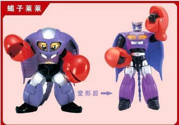 四号机蝎子莱莱:蝎子莱莱特别爱喝酒,常常喝醉后做傻事。由于睡眠学习没有完成发育不完全导致很多东西还不会。和蜘蛛侦探是一对活宝 。两人一直在蟑螂恶霸手下当小弟。由于国语翻译问题,小怪我一直以为他是蝎子实际上是以螃蟹+鲎鱼为原型制造的机器人。以回力刀作为武器,披风来防御,双手钳子很大用于夹人。变身时长9分钟