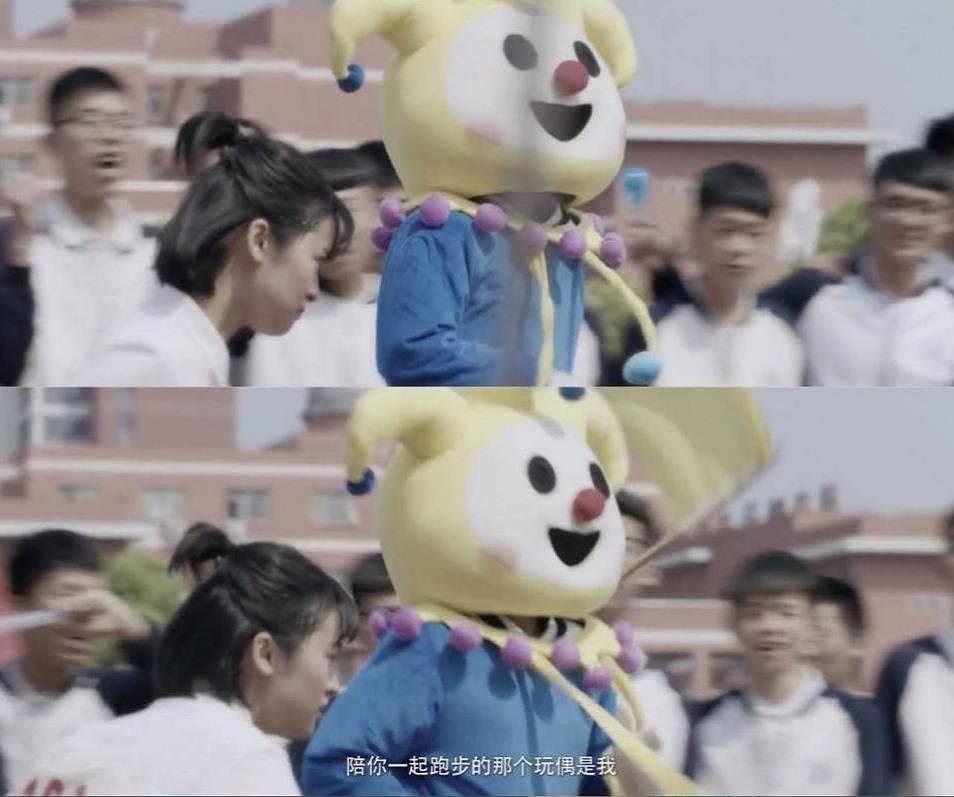 在运动会时,她特别紧张,他就特地扮成人偶陪她跑完全程;