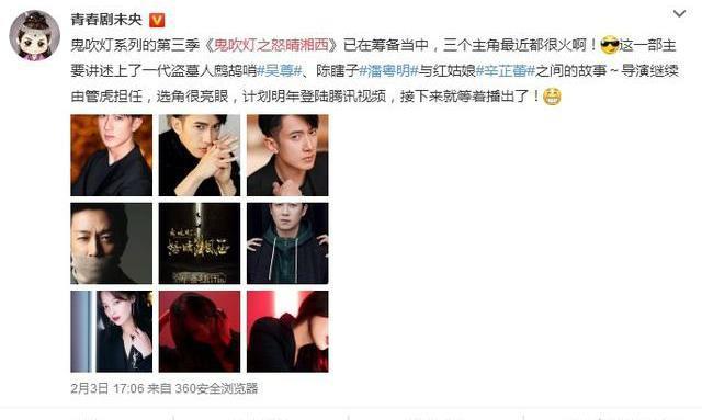 《鬼吹灯3》即将开拍,主演阵容曝光后,网友:太豪华了!