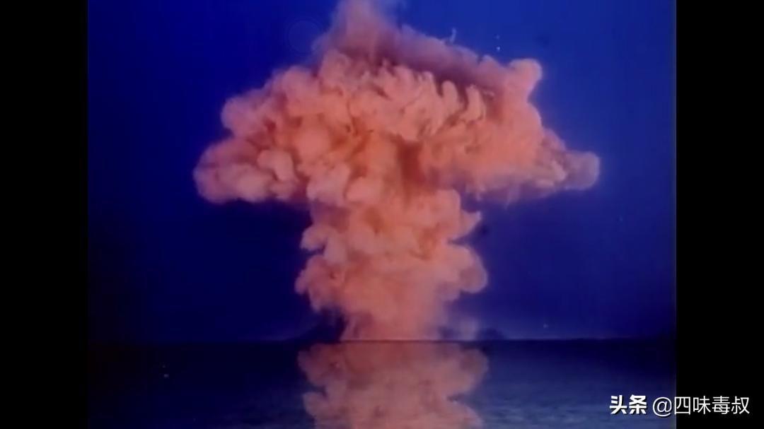 特技人员将细而干的黄土倒进盛满清水的玻璃缸,拍下黄土在水中徐徐散开的镜头,再把画面翻转,便造就了“蘑菇云”翻滚上升的场面。