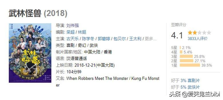 估计,影迷们观看《武林怪兽》都是冲着古天乐影帝、刘伟强导演和圣诞合家欢电影这个主题,而去买票进电影院观看的吧,希望能把自己给逗笑了。