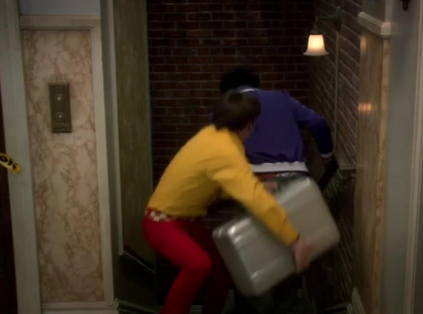 为了避开谢尔顿,三兄弟无所不用其极,最后莱纳德是爬着进去的。
