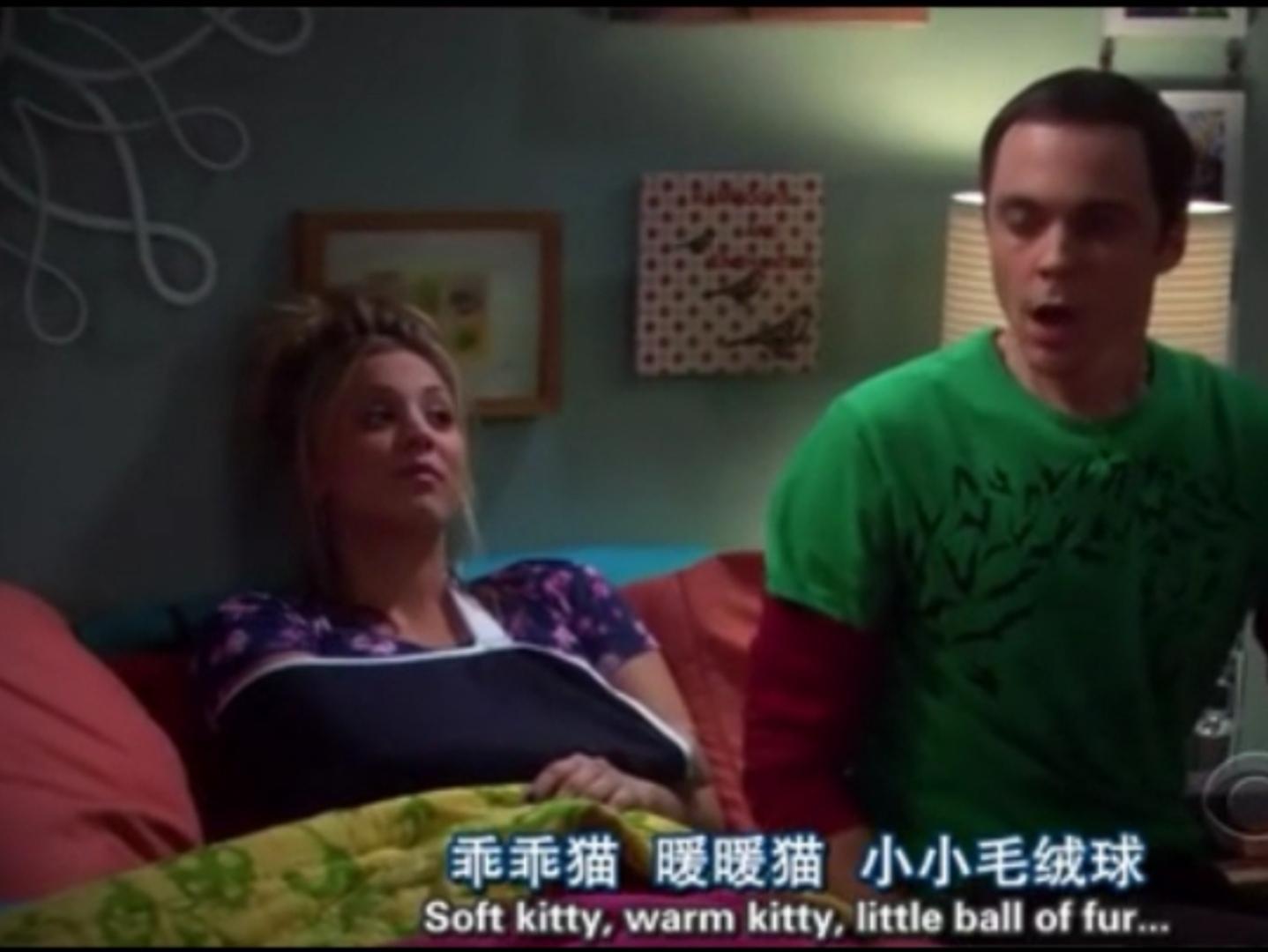 这首谢尔顿专属的乖乖猫,第1次出现的时候,是谢尔顿闹着佩妮给他唱歌,那也是我第一次感觉佩妮像佩妈。