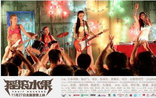 剧情:在碧海蓝天、沙滩椰树下,讲述了由苹果(常乐饰)、香蕉(王李丹妮饰)、榴莲(徐艺饰)和草莓(安娜塔莉亚·沙迪科娃饰)一群性感香艳极近于裸体的“比基尼”女郎组成的一支色彩缤纷的全女子摇滚乐队,从开始组建到最终获得成功的一段精彩人生历程。这个故事包括了成长的烦恼、爱情的甜蜜、事业的坎坷以及所有人最后都获得了幸福的美好大结局。