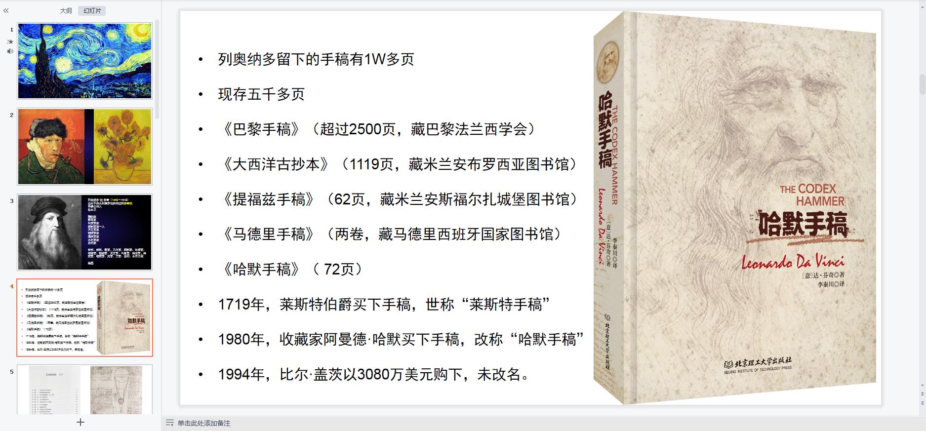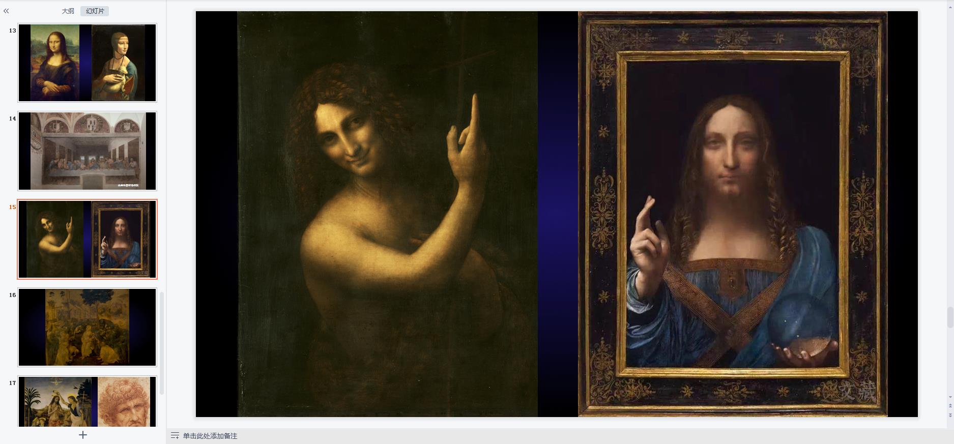 对于列奥纳多庞杂的学识,他的任何一个领域哪怕一幅画,都蕴含了太多的内容,他身上全是故事,我很难给他讲得全面,我也放弃了这种努力,随遇而安。
