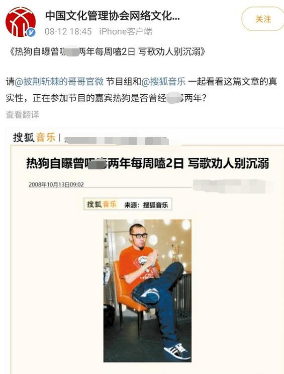 本以为事情到这里基本尘埃落定了,没想到一波未平,一波又起,中国文化管理协会发文要求《披荆斩棘的哥哥》节目组和某音乐平台调查落实热狗XD事件。