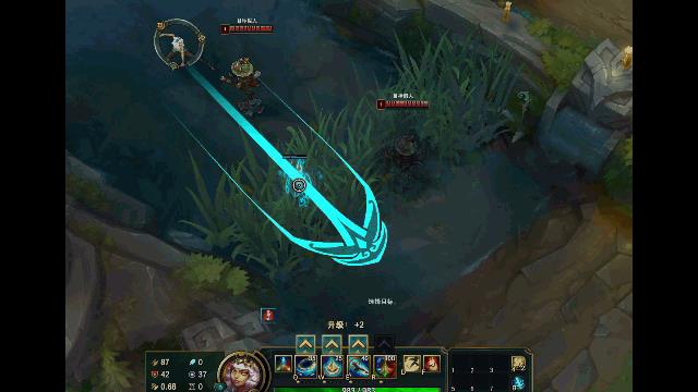 e技能相对简单,小竹便将它和大招r技能放在一起将。e没有特殊的地方,它是一个纯粹的定向位移技能,且有伤害。如图: