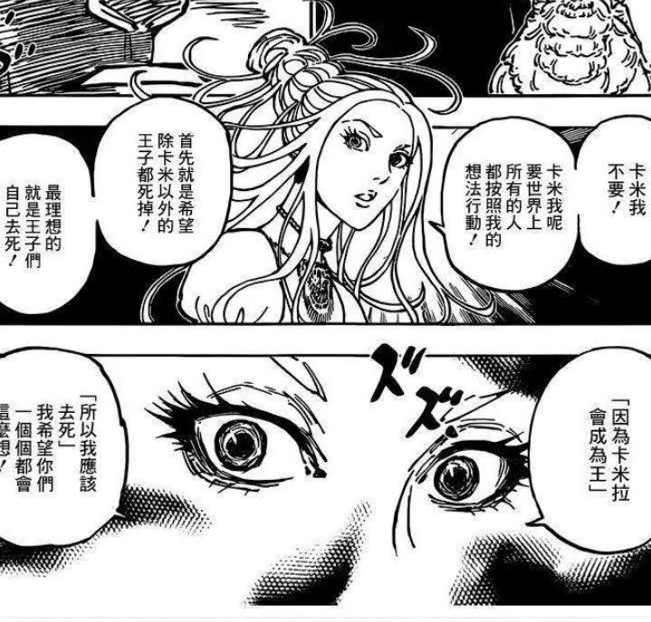 随即被大王子的侍卫兵枪杀,侍卫兵发现了卡米拉是念能力者,正疑惑就这么杀死了卡米拉,也没放松警惕