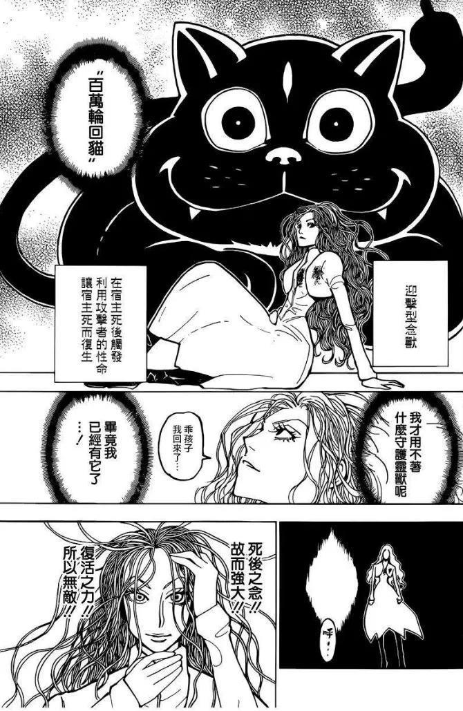 二王子本身的念能力:百万轮回猫,属于迎击型念兽,死后触发,可以借由夺取自己的敌人生命让自己复生。