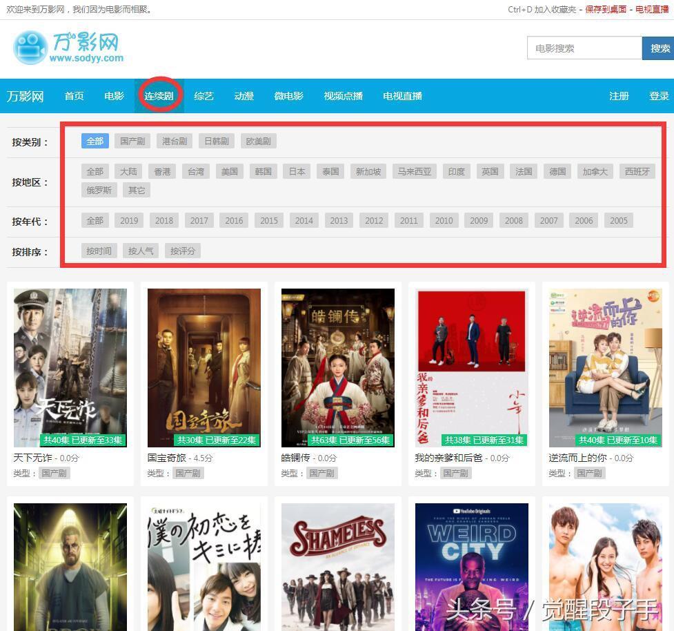 下面我们再看看电视剧怎么搜索,首先点击电视剧的那一栏