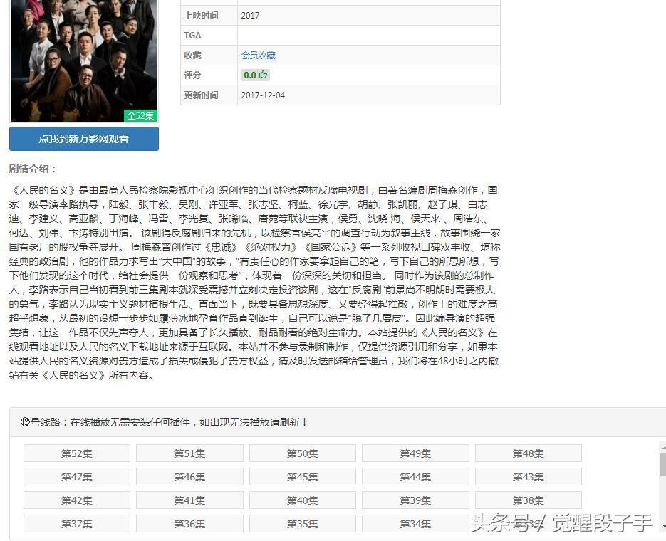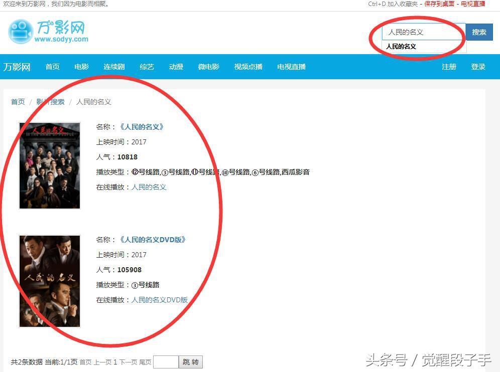 这一栏好丰富哦,不管是国内的还是国外的电视剧,分类很细,而且还把电视剧的按地区、年代、时间、人气、评分等进行分类,如果你是一个小白,不知道该看什么电视剧,可以通过这个导航栏进行选择,如果是知道某个电视剧的名称,比如说人民的名义这部电视剧,我们在搜索栏输入人民的名义,点击搜索,出现如下的界面
