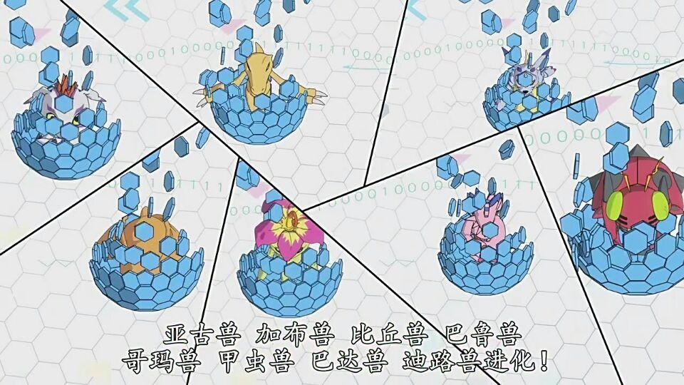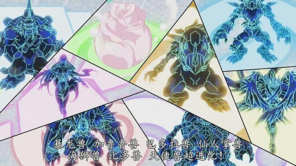 不过最精彩的还是,可以看到所有的数码宝贝同时进化,由成长期到完全体再到究极体,更重要的是能看到太一和大和的究极体合体