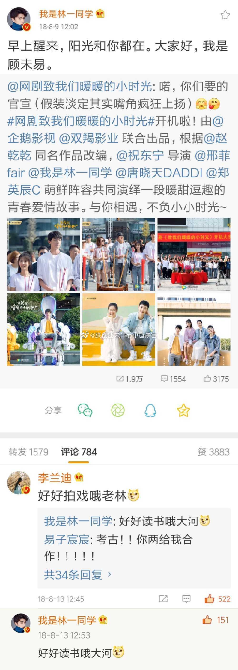 大家一起来期待一下林一小哥哥的新剧吧!