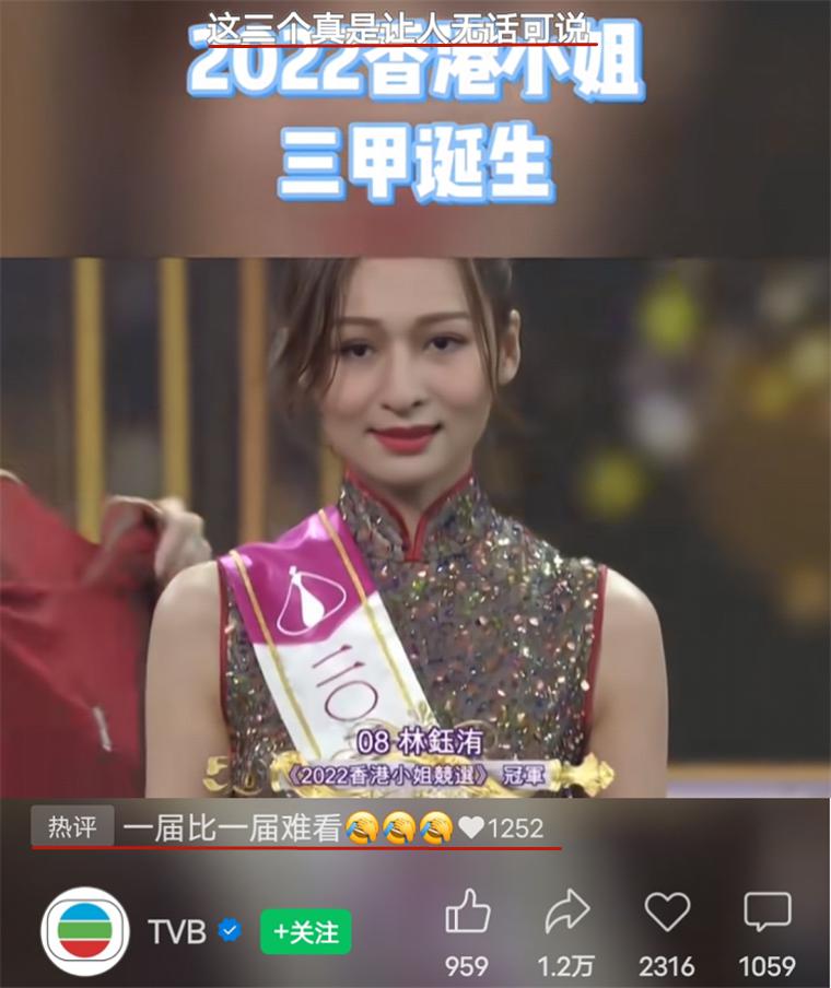 最近几年参选的佳丽颜值水平参差不齐,多届得奖三甲均不如人意,大家已经多年不看香港小姐比赛了。
