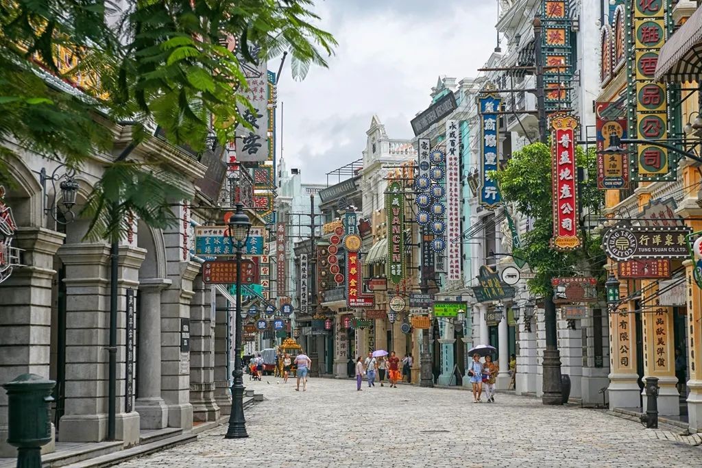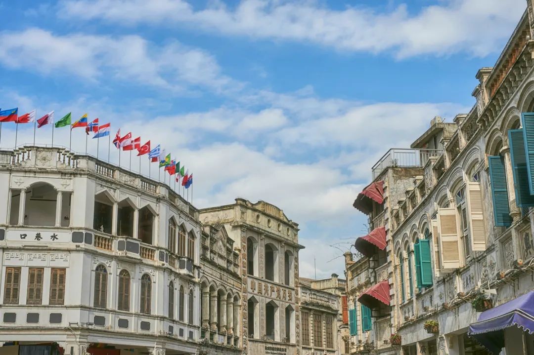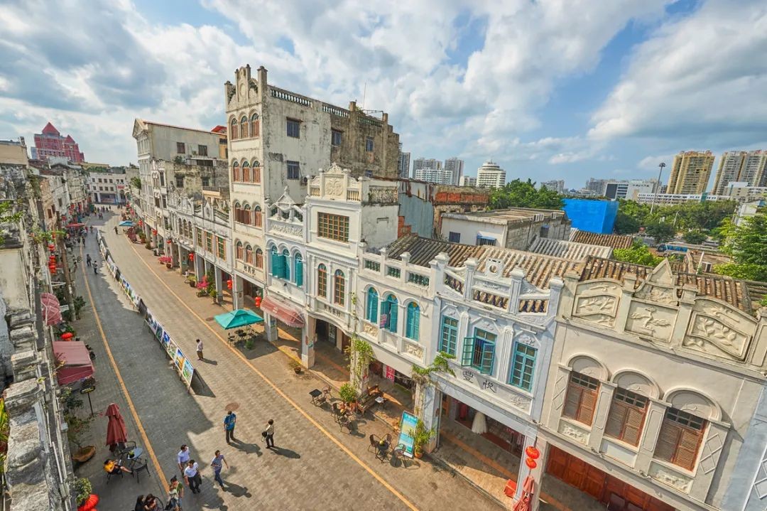 远看,南洋风格的建筑保持着上世纪的样子,散发着独有的魅力风情;而走近细瞧,骑楼里又有着许多现代时髦的店铺,让人忍不住进去逛逛。旧时的教堂、邮局等设施建筑被保存完好,人们就像许多年前一般悠闲地生活。在这里,真正会有一种“穿越”的体验。
