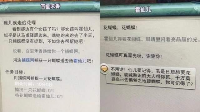 比如当年玩家在剑网3中做马嵬驿支线任务的时候,会遇上一个叫做霍仙儿喜欢抓蝴蝶的小姑娘,她是是霍承恩的孙女。而玩家为了获得进入陵墓的方法就接受杨国忠手下李云袖的委托,将霍仙儿交给他来威胁霍承恩。其实刚做任务的时候玩家只是单纯地认为这是一个普通的跑腿任务,但是最后当玩家进入陵墓完成任务以后才知道最后李云袖杀害了霍仙儿。