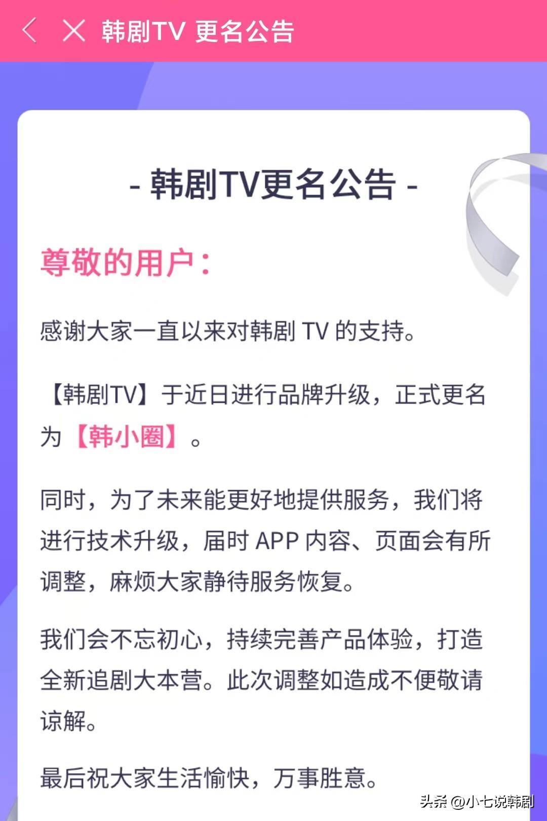 韩小圈对于很多韩剧迷来说是陌生的,当看了官方的声明,才知道韩小圈原来是韩剧TV的升级版。