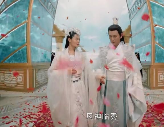 《香蜜沉沉烬如霜》花神梓芬诞下女儿锦觅后饮恨而逝,一朵小小的花瓣飘在了风神临秀的头发上,正在与她举行大婚的水神洛霖轻轻地帮她拿下。