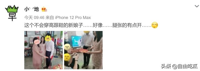 对此,陈安妮还自我调侃道:“这个不会穿高跟鞋的新娘子,好像腿张得有点开。”