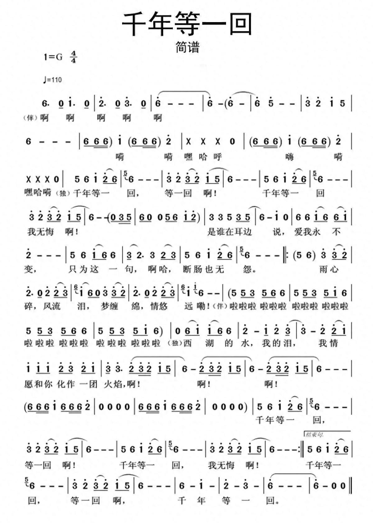 《千年等一回》简谱及音乐赏析