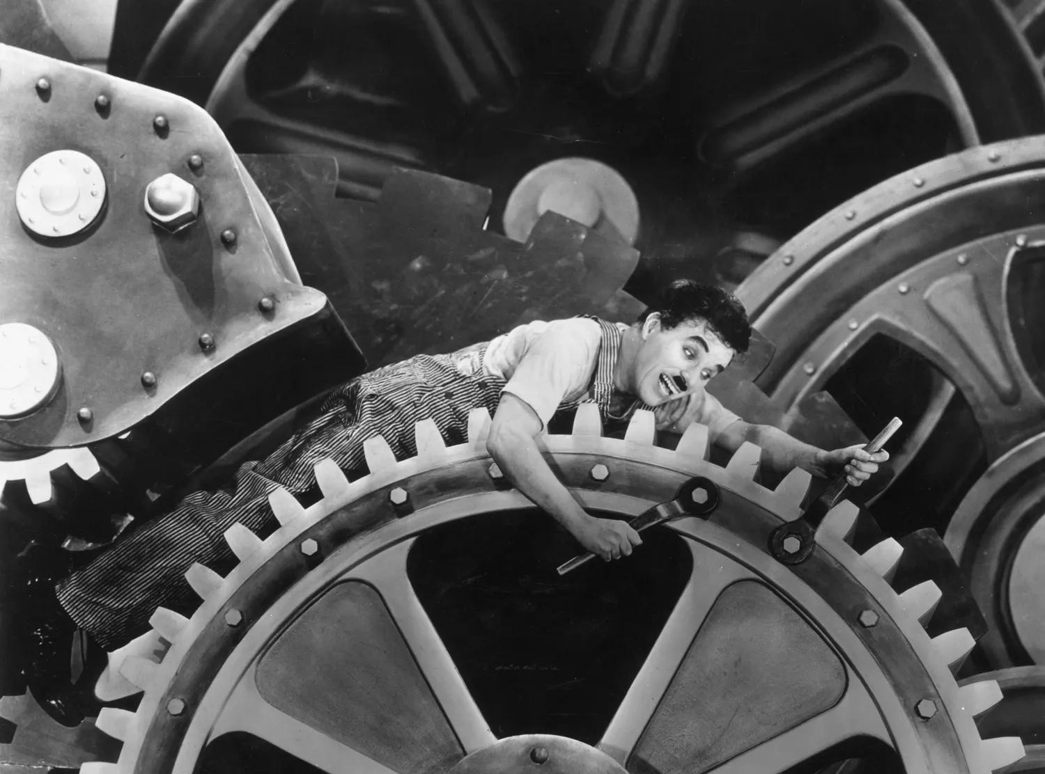 卓别林最后一部几乎无声的电影是1936年上映的《摩登时代》。它包括音效和乐谱以及一首用胡言乱语演唱的歌曲。对工作场所自动化危险的潜在政治评论引发了一些观众的批评。虽然这部电影因其身体喜剧而受到称赞,但却在商业上令人失望。
