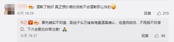 而《爱情公寓5》官方对于此事反应也是很迅速,很快就进行了内部核查,并且做出了道歉。导演韦正也在微博上转发微博,并且在评论区也向粉丝道歉,表示是自己的疏忽导致,下次会更加注意。