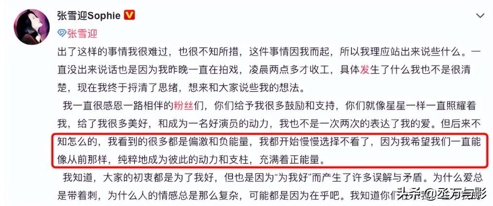 张雪迎这才出来安抚粉丝,表示自己太忙没顾及看消息,希望大家不要怪罪姐姐,她没错。这话不说还好,一说更是点燃了粉丝们心中的怒火。