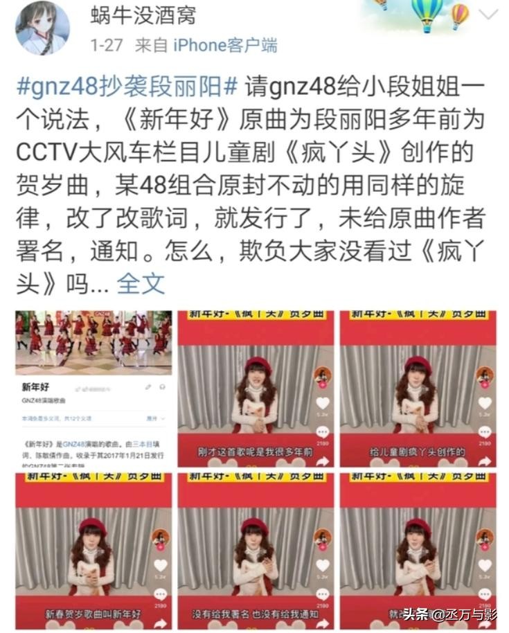 最近比较有热度的还是段丽阳维权一事,某不知名女团发布的歌曲完全抄袭了她年轻时给《疯丫头》创作的曲目,维权视频发出后对方将其屏蔽,不少网友为其讨回公道。