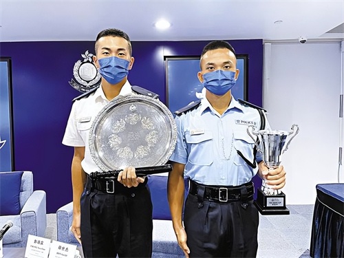 左边见习督察获得施礼荣盾,右边为警员获得薛富杯。
