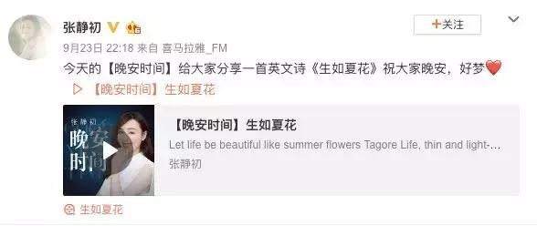 张静初现在经常会在微博上分享她录得有声书