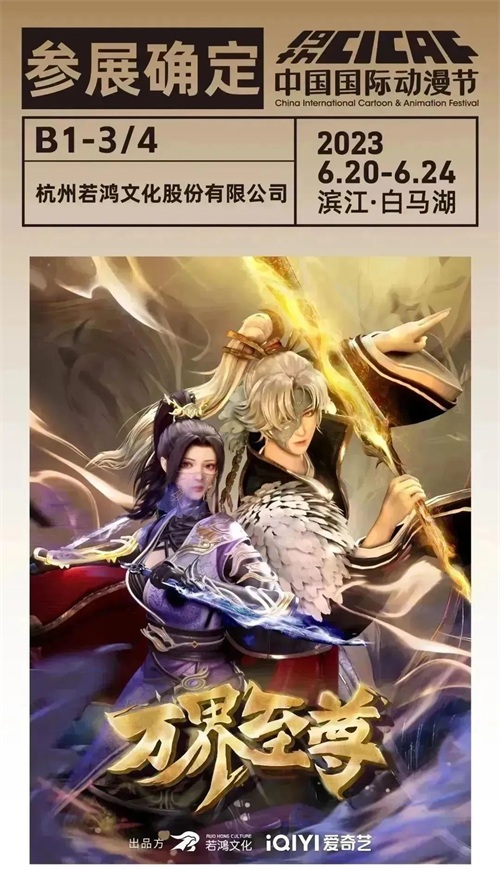 若鸿文化将携《妖神记》《武神主宰》《万界仙踪》《万界至尊》《九天玄帝诀》《剑域风云》等出展第十九届中国国际动漫节产业博览会,展位号B1-3/4。所有热播动画都将在摊位呈现,除此之外,摊位上还会有漂亮的汉服小姐姐,欢迎大家来合照打卡!