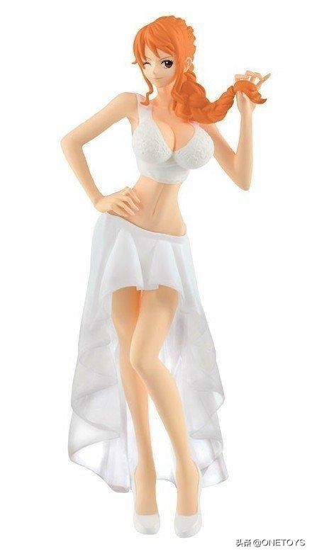 娜美婚纱版手办,非常特别,是一款比基尼婚纱,娜美身穿短式婚礼着装的样子也是相当妩媚的。下装半透明的长裙设定,也给予了观众更为之轻盈通透的观感,既妩媚又不失活泼可爱。
