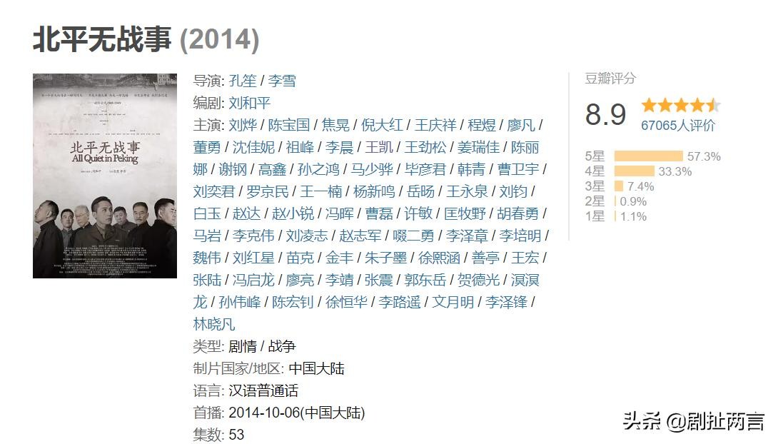 《北平无战事》选材精良,更较大程度地做到了尊重题材,其成功并非偶然。不过《北平》好则好矣,未尽善焉,它的走红,其实也暴露出了我国目前的本土电视剧市场缺乏优秀作品的现状。
