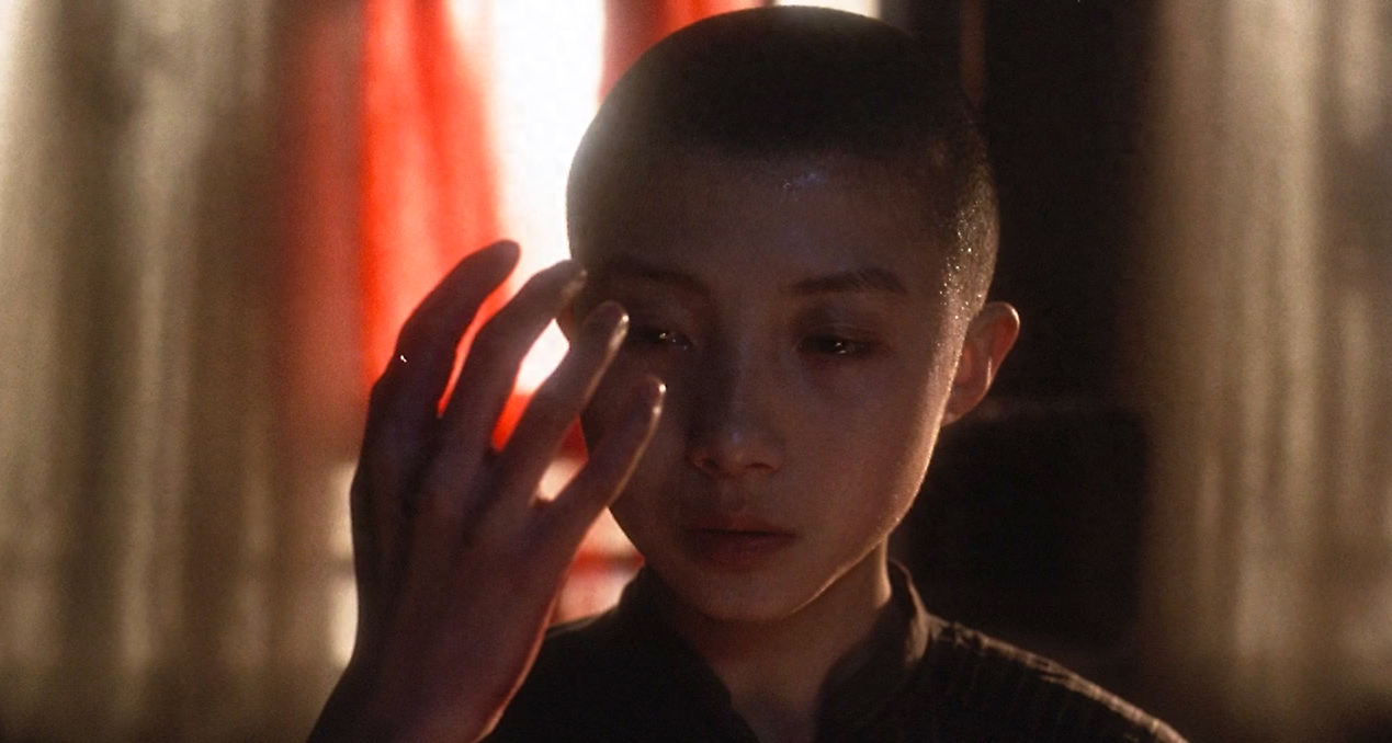 《思凡》第一次在本片出现,是教戏的师傅考问的时候,小豆干将戏文说错。其结果是挨了一次重重的打,满手鲜血。他绝望之极,将手伸向滚烫的热水以求自残了断这痛苦不堪的学戏生涯,此时,画外响起“磨剪子锵菜刀”的叫喊,这个叫喊同样出现在小豆子被母亲残忍剁掉多余的第六个手指那一场,使这一场与前一场无疑具有相同的粗戕害意义。