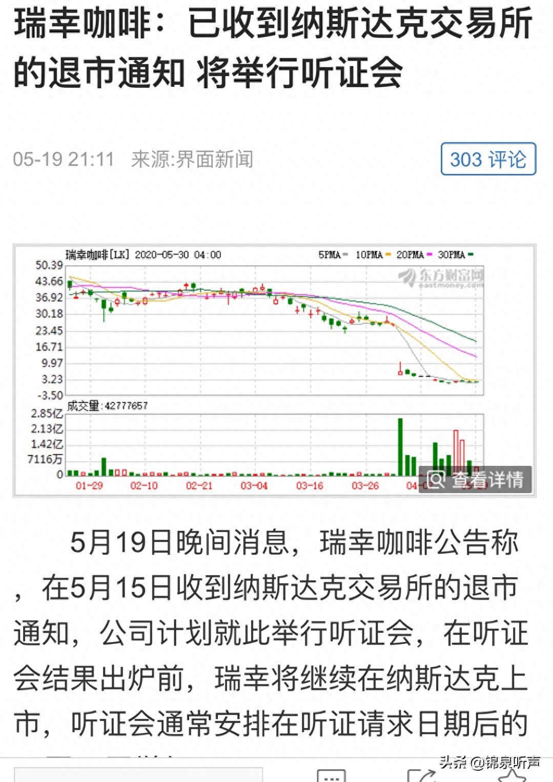 然后到5月中旬,被美国纳斯达克交易所(NASDAQ)通知必须摘牌,也就是强制退市。