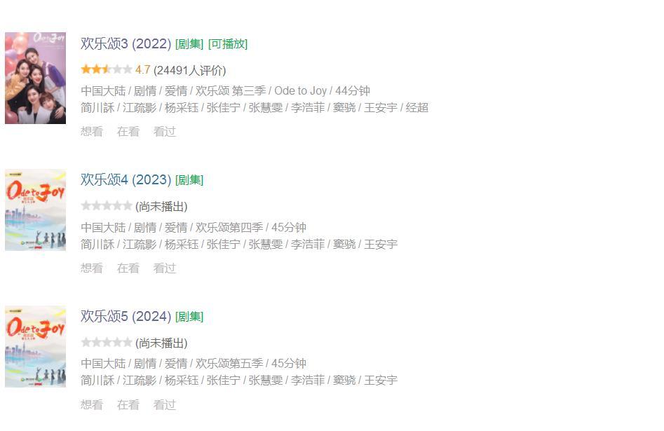 其二,目前《欢乐颂3》在播,但其实《欢乐颂4》和《欢乐颂5》都已经拍了出来。如果小编没有猜错的话,后面这几部应该是连在一起的剧情。所以,我才有理由怀疑,《欢乐颂3》并不是大结局,真正的结局还要等到第4部、第5部了。
