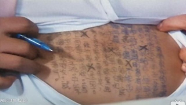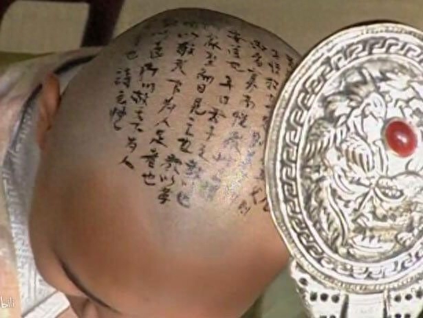 抄在自己的头皮上:(等等,这样照出来字不是反的么)