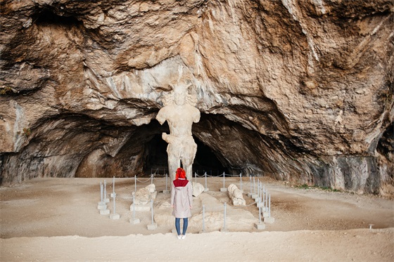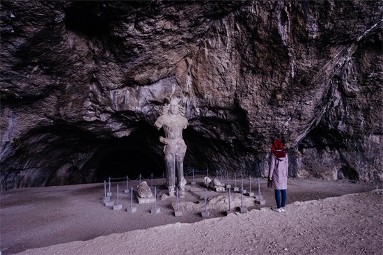 雕像身后的山洞并不特别深,一公里的样子,但并没有任何照明设备,探洞最好自备手电。洞穴上下都是巨大的钟乳石,千年以前的建筑者应该是在天然洞穴加人工开凿而成的。虽然洞穴并没有任何墓穴的痕迹,形制也和古波斯的墓穴不同,所以它的准确用途至今没有定论。